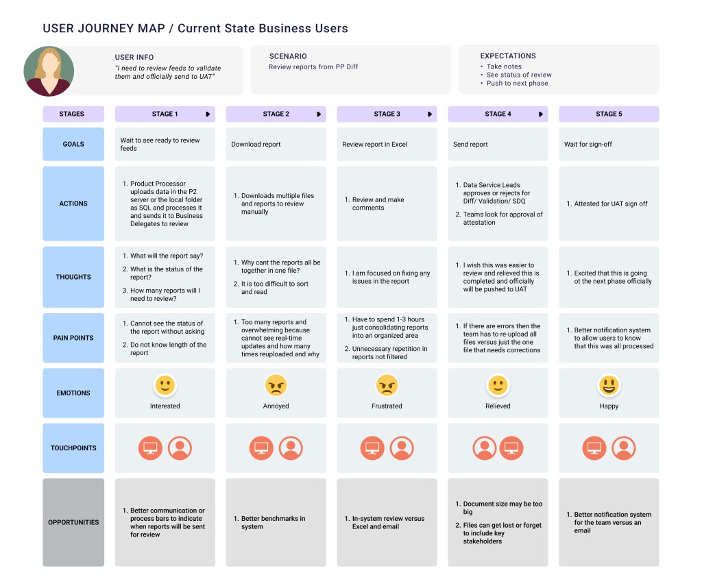 - Needs: review and correct data, run validation rules, monitor submissions, monitor statuses, track failed uploads, re-run file reports, attest files, verify data accuracy and approve or reject disposition reports